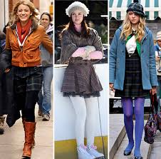 Another thing that I love about the Gossip Girl fashion during fall and winter is how they layer various pieces. It gives the outfits dimension so they don't look so plain. The characters wear alot of tights and layer dresses, skirts, etc. ontop. I love all of the tights and leggings that they use in the show. Most of them have really cool patterns or come in bright colors to really spice up the outfit. Layering different pieces together will also keep you warm why keeping your winter outfit interesting. They even make plain t-shirts look intricate...